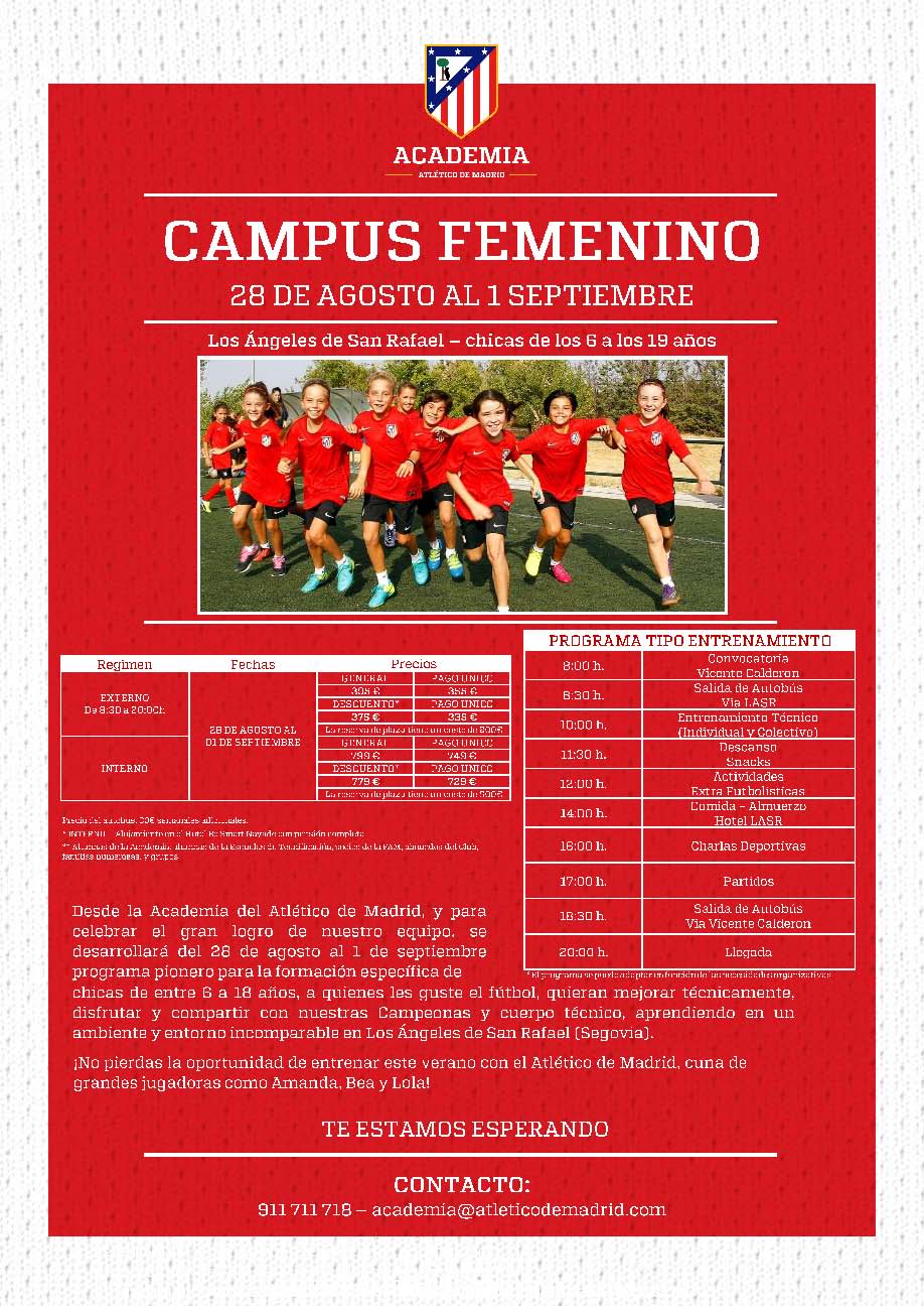 Programa pionero para la formación específica de chicas de entre 6 a 18 años, a quienes les guste el fútbol, quieran mejorar técnicamente, disfrutar y compartir con nuestra Campeonas y cuerpo técnico, aprendiendo en un ambiente y entorno incomparable en Los Ángeles de San Rafael.