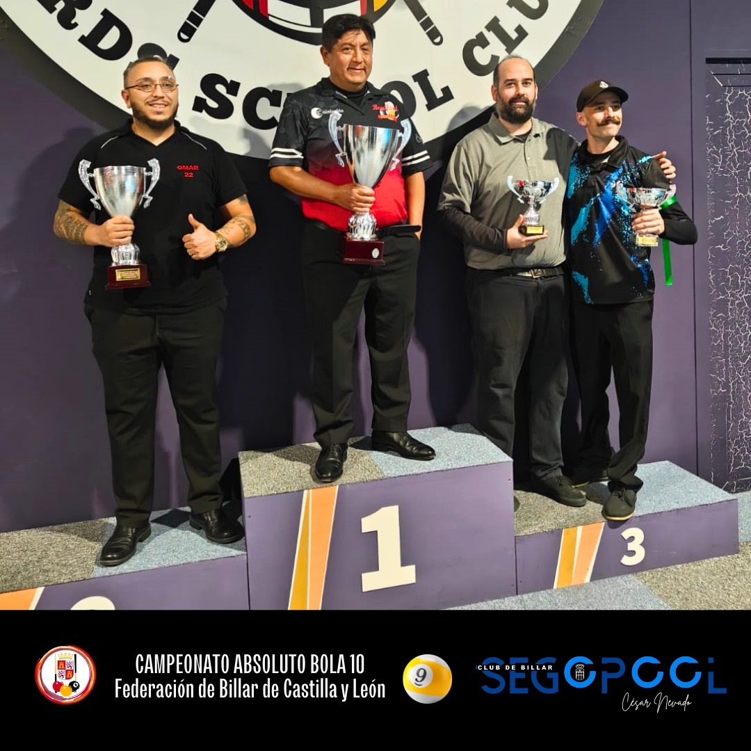 El pasado domingo 4 de febrero de 2024 se celebró en el Billiard School Club 2021 el Campeonato Absoluto de Bola 10 de la Comunidad Autónoma de Castilla y León 2023-24, organizado por la Federación de Billar de Castilla y León, lo que da CARÁCTER OFICIAL AL CAMPEÓN.