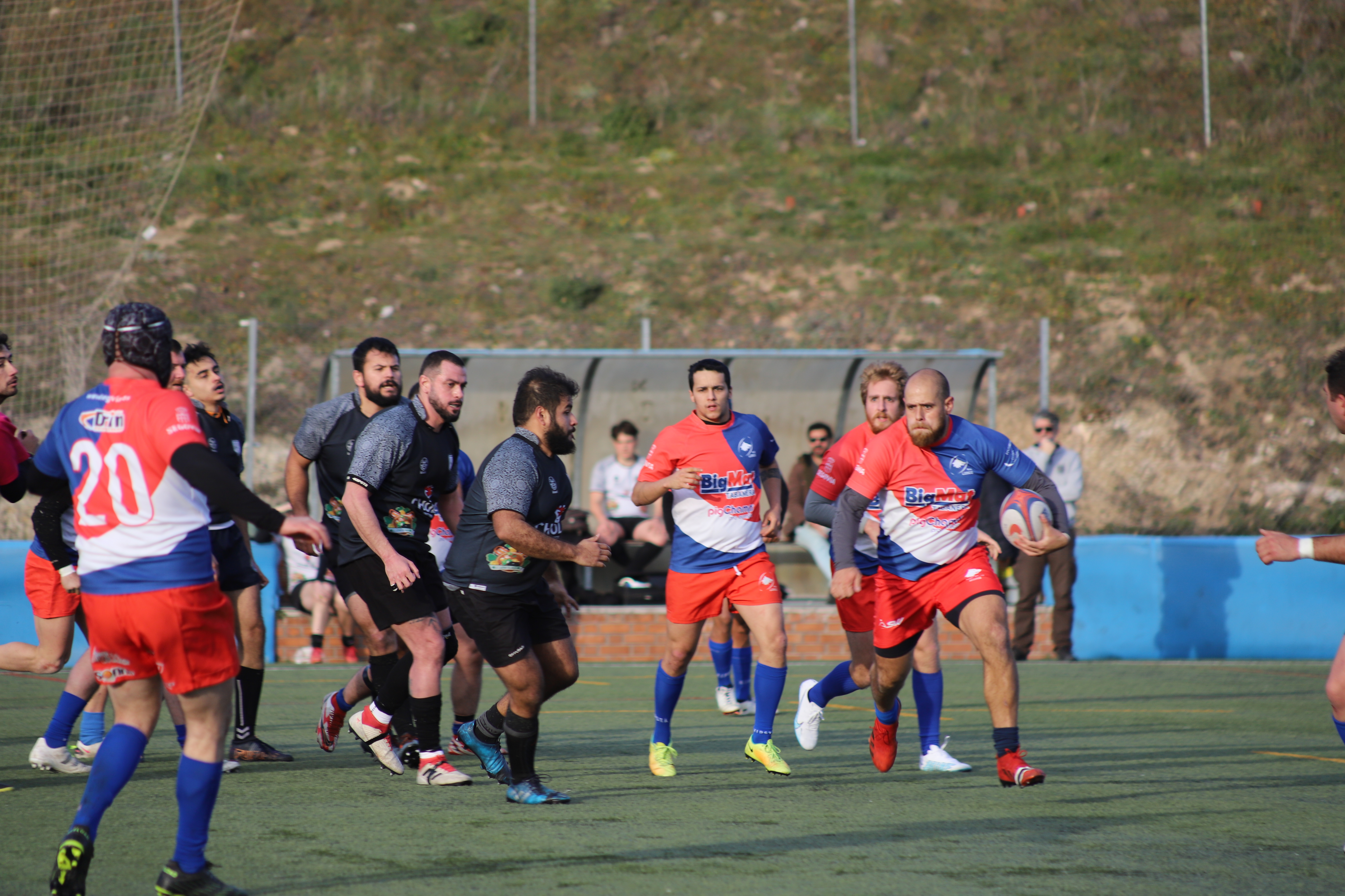Desde el pitido inicial se veía un equipo enchufadísimo, los Lobos lejos de achicarse por jugar fuera de casa mostraban una garra y una superioridad clarísimas. En esta primera parte solo había un equipo en el campo. Las fases de delantera eran para los Lobos, y los ensayos llegaban principalmente por la “tres cuartos” que era claramente superior a la línea rival. Una primera parte sin complicaciones para el BigMat que terminaba 30-5.