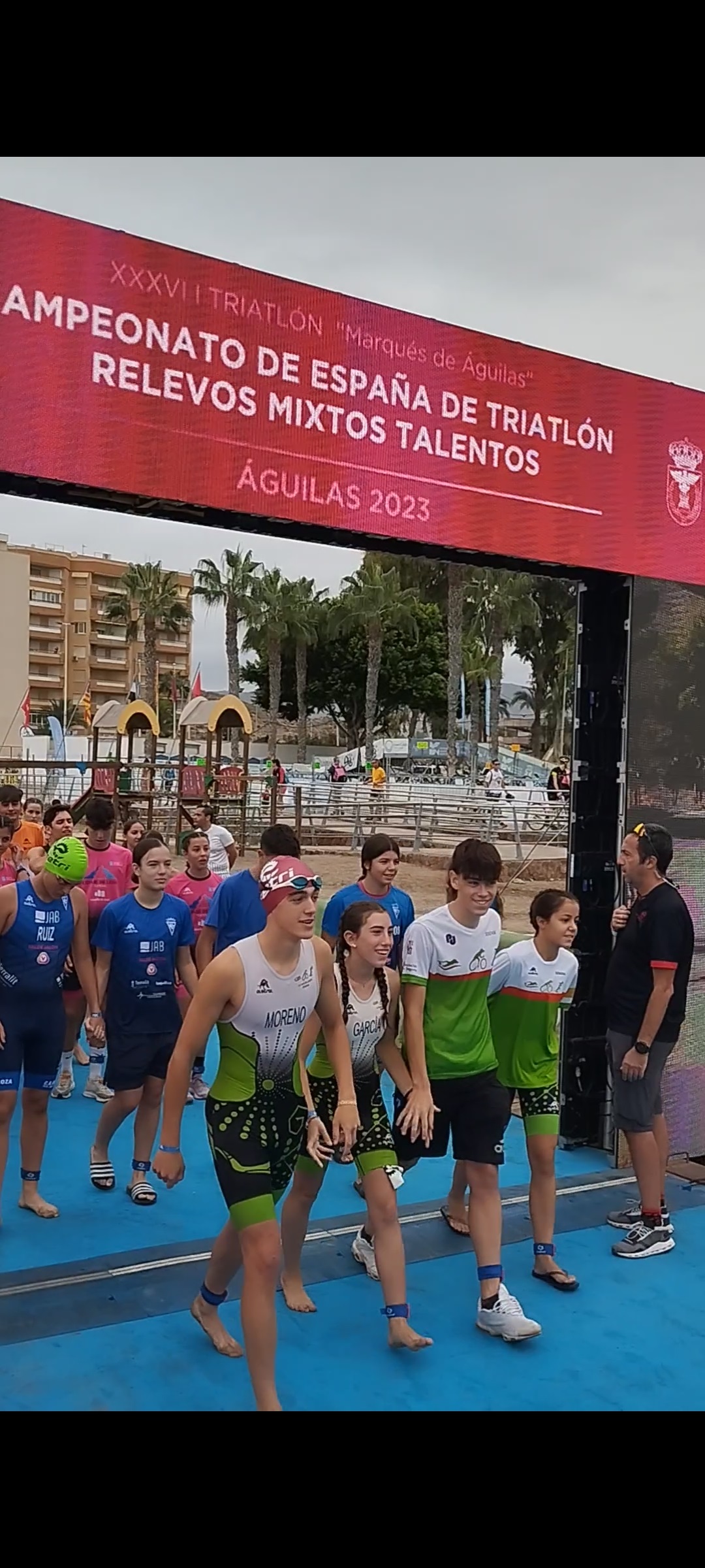 El Relevo Mixto Élite lo formaban Mateo, Amanda, Rodrigo y Aroa, cada uno de ellos tenía que hacer un triatlón supersprint (300-5-1,5), los relevos los iniciaba un chico y los finalizaba una chica; el tiempo empleado fue 1:20:42, quedando en la 16ª posición; mientras que en la Liga Talento se obtenía la 2ª plaza del grupo de la Liga de segunda división. Por otro lado, con una diferencia de 2’ se daba la salida al Relevo Mixto Open formado por Marcos, Daniela, Mario y Celia, que pararon el crono en 1:27:21, siendo el 17º mejor relevo del grupo.