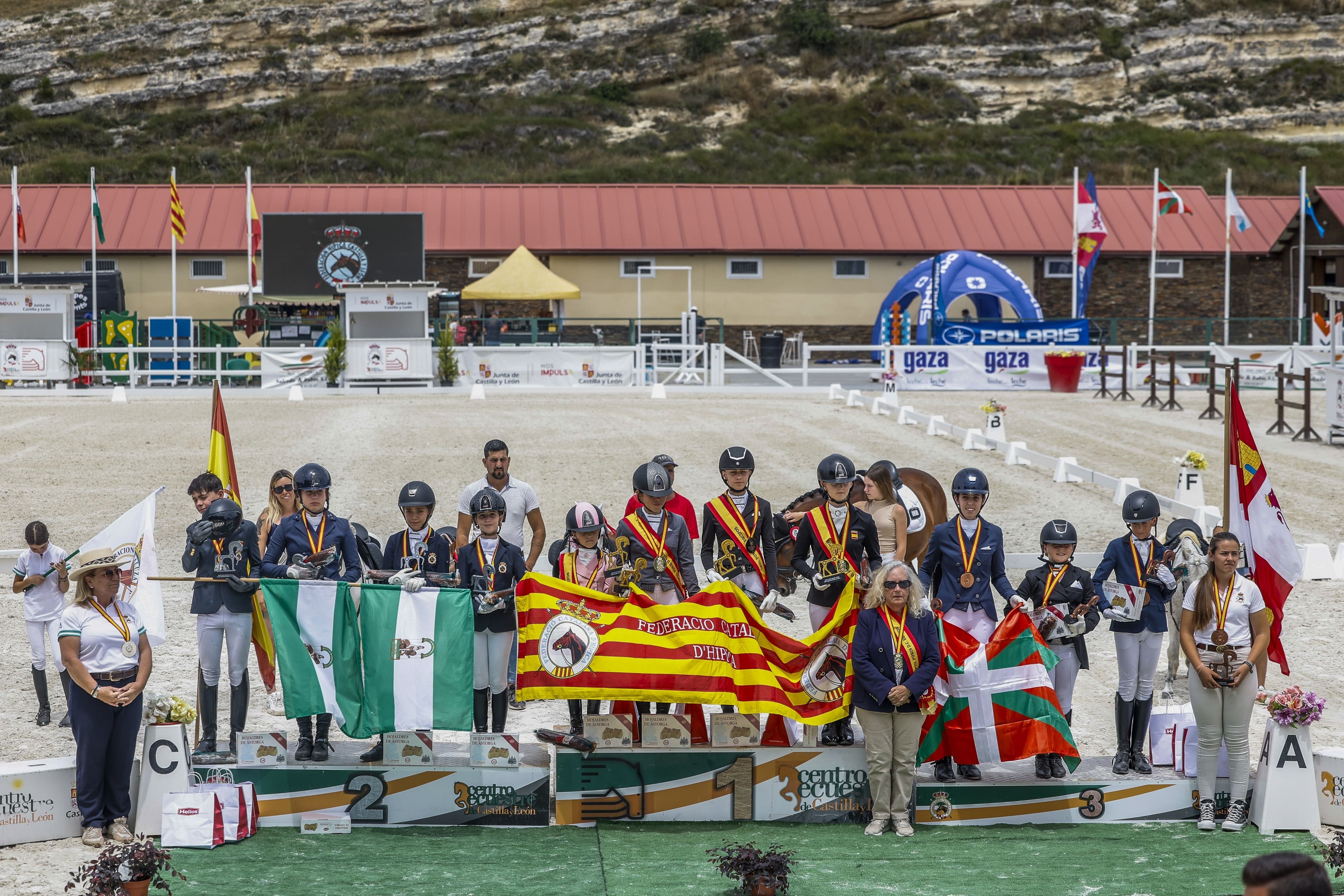El acto de imposición de medallas y proclamación de campeones por equipos, contó con la presencia de D. Jorge Izquierdo Arribas, director general de Desarrollo Rural de la Consejería de Agricultura, Ganadería y Desarrollo Rural; D. Raúl González Cerezo, jefe del Servicio Territorial de Agricultura, Ganadería y Desarrollo Rural de Segovia, y D. Miguel Morales Cobos, vicepresidente Ejecutivo y Director Técnico de la Federación Híca de castilla y León, organizadora del XXVI Campeonato de España de Equitación con Ponis..