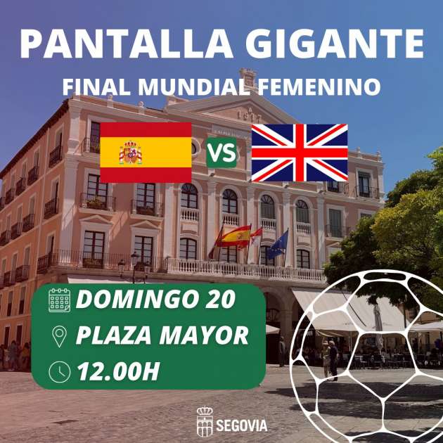 El Ayuntamiento de Segovia instalará una pantalla gigante para que los segovianos puedan seguir en directo el partido de la final del Mundial Femenino de fútbol que enfrentará a la selección española con la que resulte ganadora de la semifinal entre la anfitriona, Australia y la de Inglaterra que se juega este miércoles.