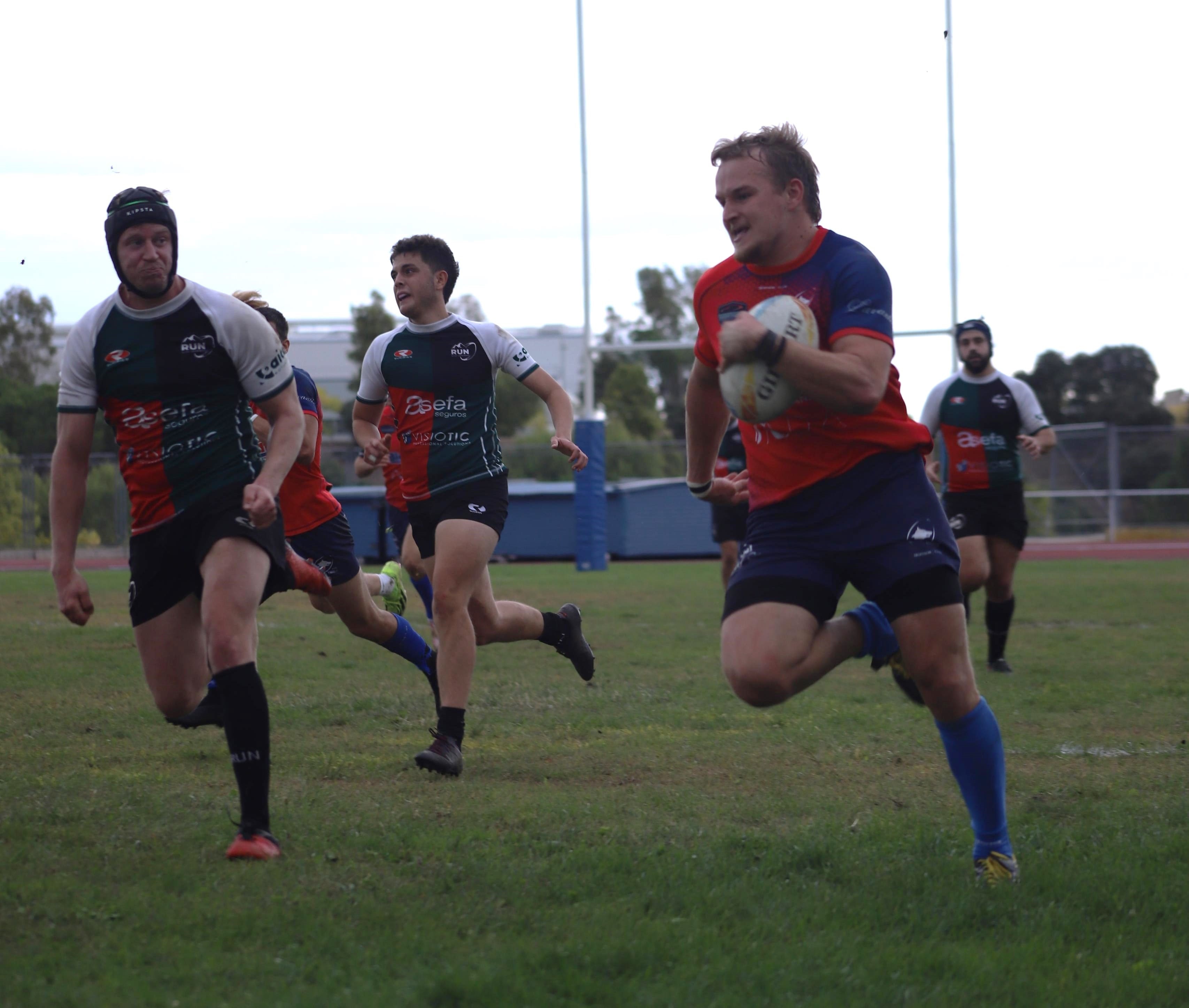 Tantos las touchs como las melés eran dominio de RUN pero la velocidad de los ¾ de los Lobos hizo que estos se adelantaran en el marcador 0 a 7. El RUN no bajó la cabeza y siguió empujando durante toda la primera mitad para dar la vuelta al marcador, apoyándose en la envergadura de sus jugadores que les permitían ganar metros.