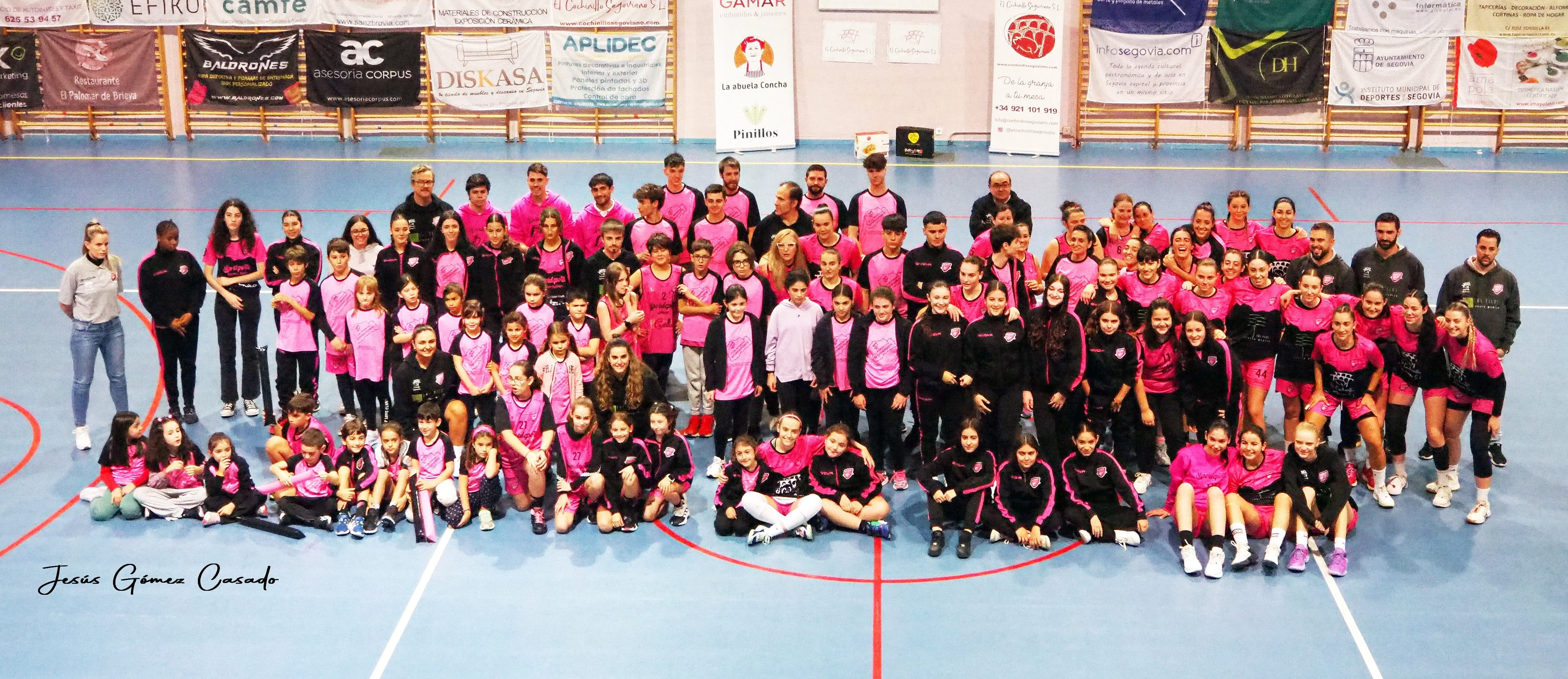La jornada fue un éxito rotundo, comenzando con un clinic de formación para entrenadores en el que participaron los niños y niñas de la escuela de Cantalejo, seguido por el derbi de nuestros equipos de la categoría senior femenina con victoria de Cocinas MYC Trescasas sobre el nuevo equipo de Los Tilos Centro Médico que disputaba así su primer partido oficial. El momento mas destacado de la jornada fue la foto en familia con cada uno de nuestros equipos donde participaron mas de la mitad de los deportistas del club y varios de nuestros patrocinadores. El día culminó con el emocionante encuentro entre nuestro equipo de Primera División, El Cochinillo Segoviano SL y Contenedores Castro Venta de Baños con resultado favorable para las locales (77-58) y con un magnifico ambiente en las tres gradas teñidas de rosa y negro y entregadas al primer equipo durante el partido.