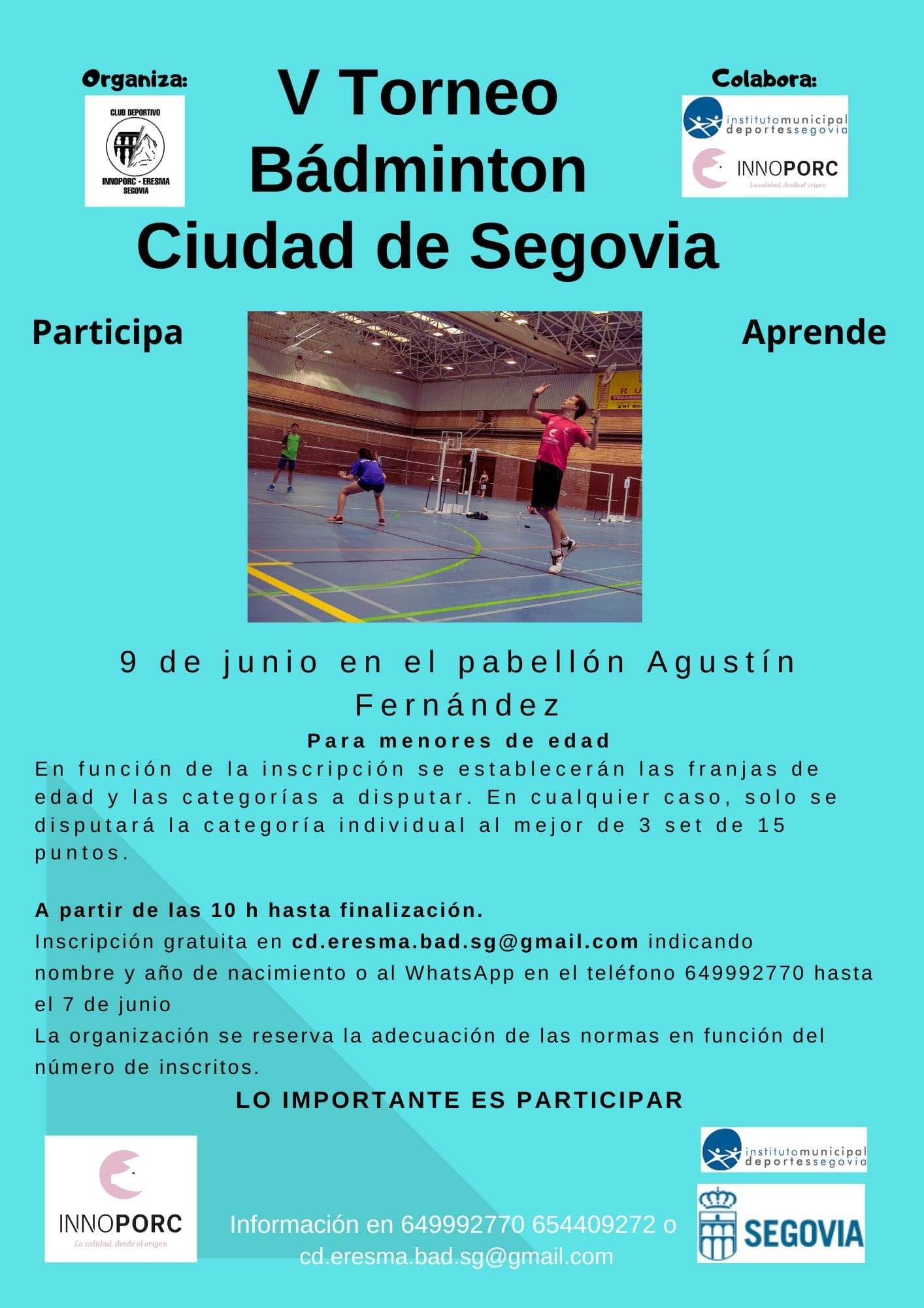 Inscripciones (hasta el 7 de junio): c.d.eresma.bad.sg@gmail.com; Whatsapp: 649992770