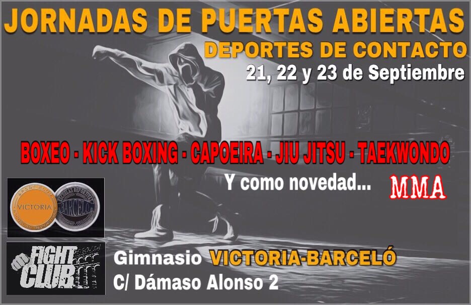 Deportes de contacto: Boxeo, Kick Boxing, Capoeira, Jiu Jitsu, Taekwondo, y como novedad … MMA