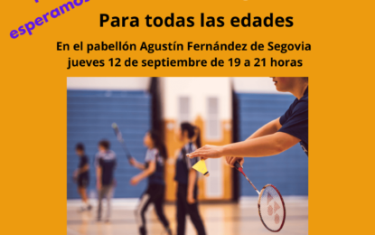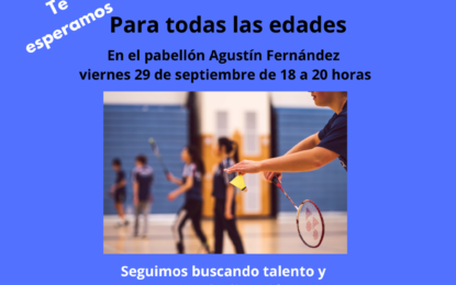 Viernes 29, de 18.00 a 20.00 horas, en el pabellón Agustín Fernández Venid a probar el bádminton. Aprende, diviértete y empuña la raqueta jugando con nosotros. Sin compromiso. Después del...Sep 20, 2023 IMDSG Destacada, Otras noticias 0
