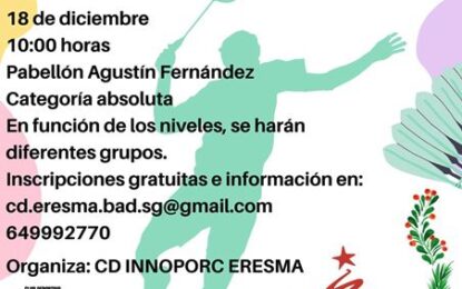 El próximo domingo 18 de diciembre, celebraremos nuestro habitual torneo de Navidad, en esta ocasión, solo para categoría absoluta Será a partir de las 10 horas en el pabellón Agustín...Nov 28, 2022 IMDSG Destacada, Otras noticias 0