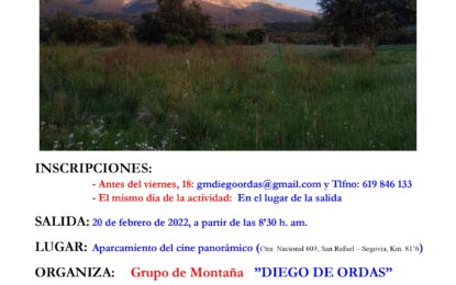 Organizada por el Grupo de Montaña Diego de Ordás se llevó a cabo el pasado domingo, 20 de febrero de 2022 RECORRIDO: .- Por el parque nacional de la Sierra de Guadarrama, siguiendo la cuerda de...Feb 18, 2022 IMDSG Destacada, Otras noticias 0