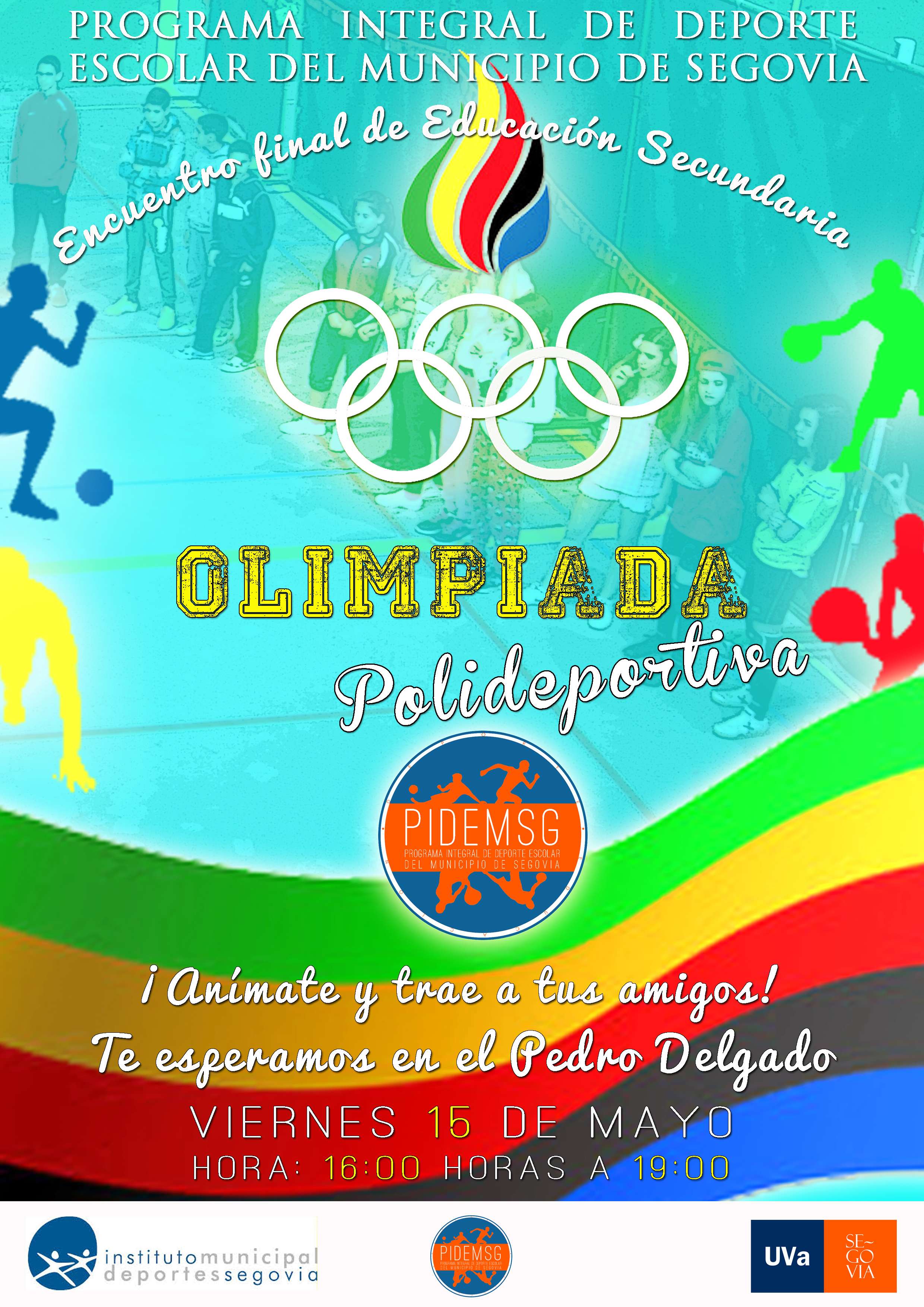 El viernes, 15 de mayo, se celebrará la última jornada del Programa Integral de Deporte Escolar del Municipio de Segovia (PIDEMSG) para las categorías de Educación Secundaria y Bachillerato y está abierta a la participación de todos los estudiantes que lo deseen. Este encuentro tendrá lugar en el pabellón “Pedro Delgado” e instalaciones deportivas anexas.