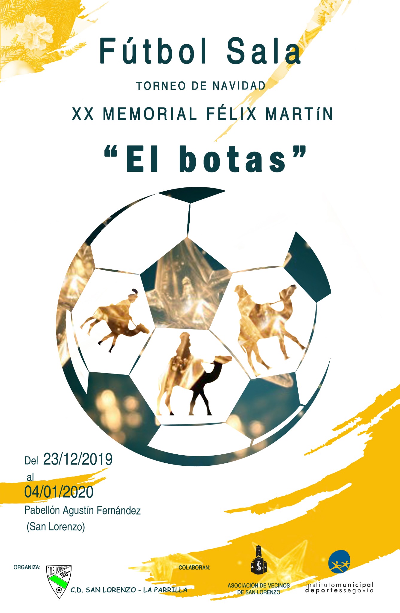 El C.D. San Lorenzo en colaboración con Asociación de vecinos del barrio de San Lorenzo y el Instituto Municipal de Deportes, organiza el XX torneo de navidad memorial Félix Martín “El botas”, que tendrá lugar en el pabellón “Agustín Fernandez” de Segovia entre los días 23 de diciembre y 4 de enero.